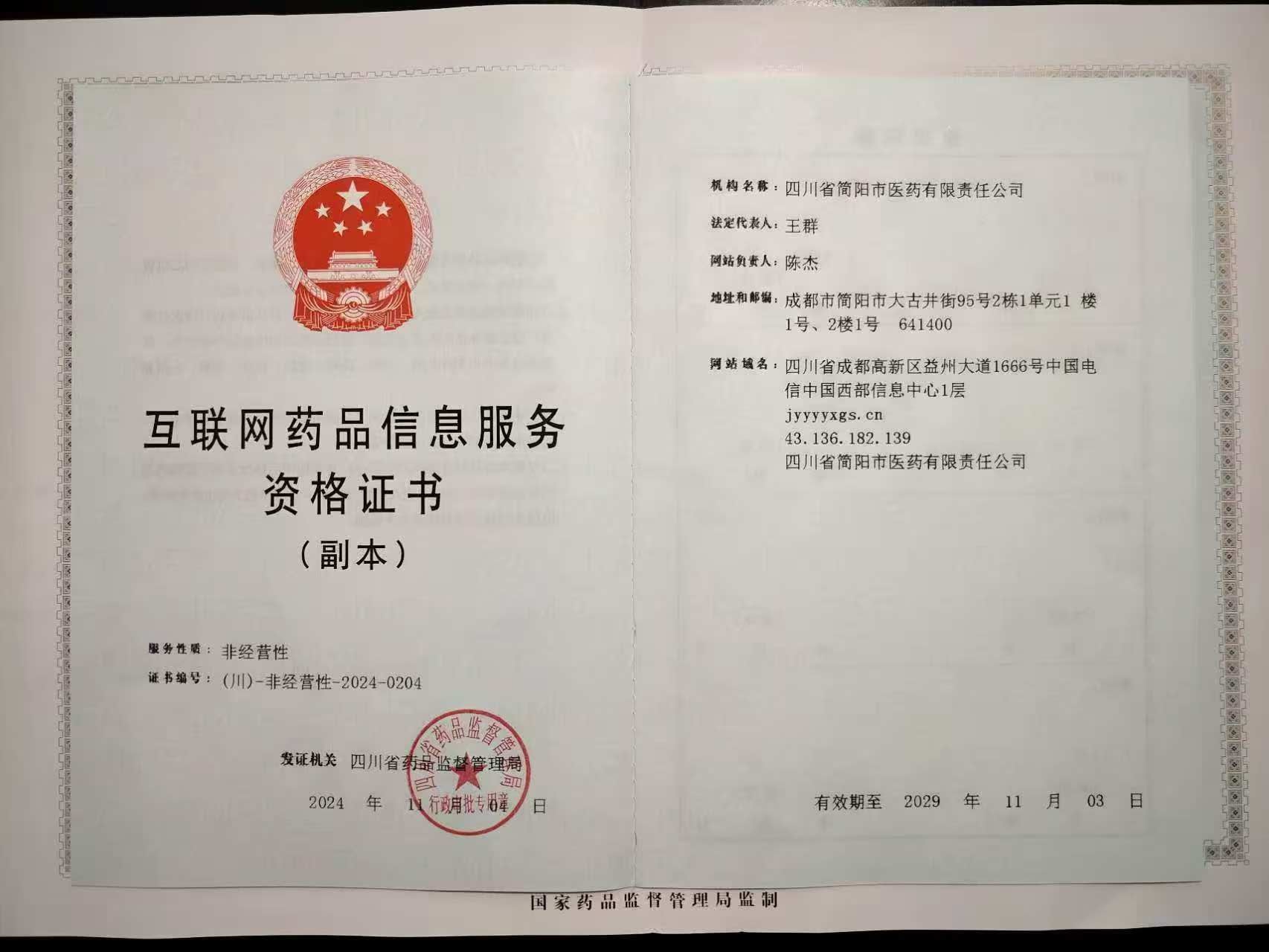 四川省简阳市医药有限责任公司座落于四川省简阳市简城镇大古井街95号。公司在2002年收购原国营简阳市医药公司,并在此基础上重组建立。并多次通过国家GSP认证。公司类型为一人有限责任公司(自然人独资),注册资本300万元整。公司经营范围:许可项目:药品批发;第三类医疗器械经营;食品销售;道路货物运输(不含危险货...